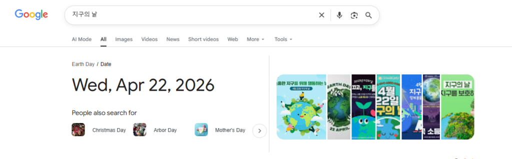 구글 에서는 지구의 날에 퀴즈를 출제하고 있다