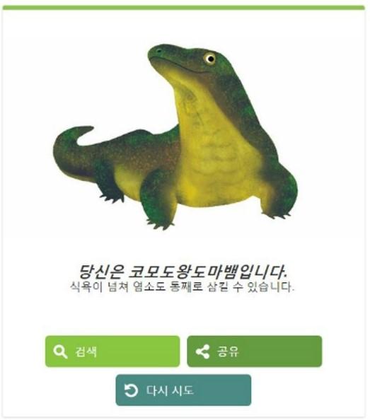 제가 Google 지구의 날 퀴즈를 해봤을 때 나온 결과는 코모도왕도마뱀이었습니다.