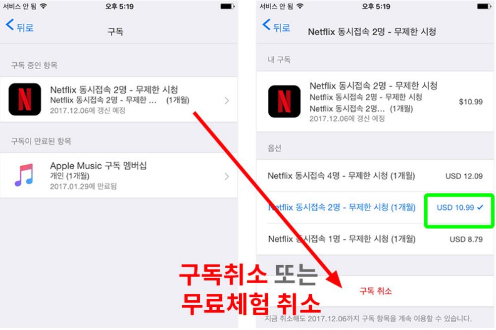 자동 갱신 구독의 취소 절차
