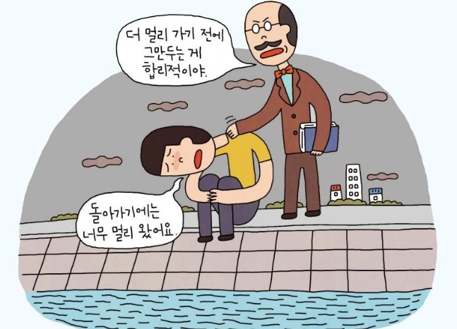 이미 지불한 음식값은 내가 다 먹든 남기든 되돌릴 수 없는 것이지만 억지로 먹느라 고생을 한다면 추가적인 손실을 불러일으킵니다.